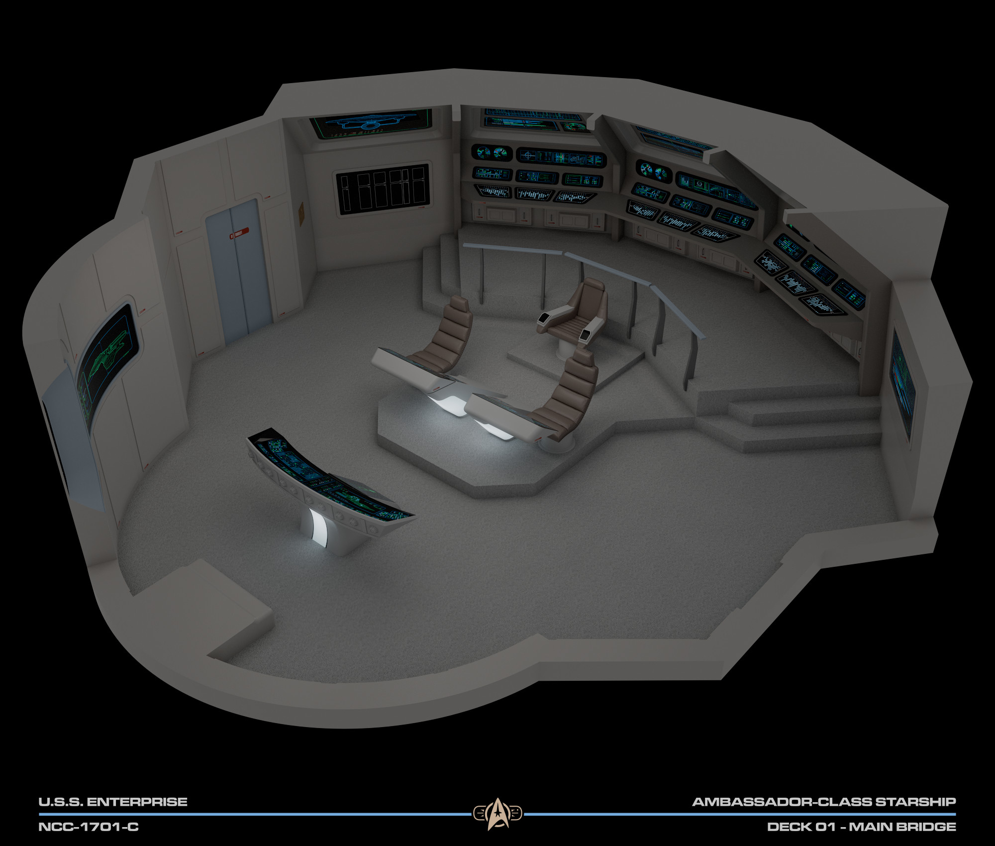 Given the greater automation of systems on Ambassador-class starships when compared to previous designs, the ship necessitated a smaller crew in proportion to its size. Nowhere was this more evident than on the bridge, which was smaller and had fewer work stations than older ships.