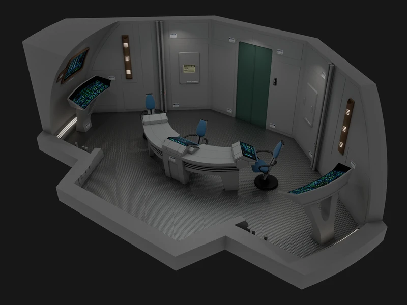 The main ward featured four standard biobeds and an integrated surgical bay. A nurse station sat at the center of the room, in front of a large display which could showcase whatever medical information the staff required. The port side of the room had a small laboratory area, with two workstations and various medical devices on hand. On the starboard side there was the office for the chief medical officer, which connected to other areas of the medical complex through a dedicated door.