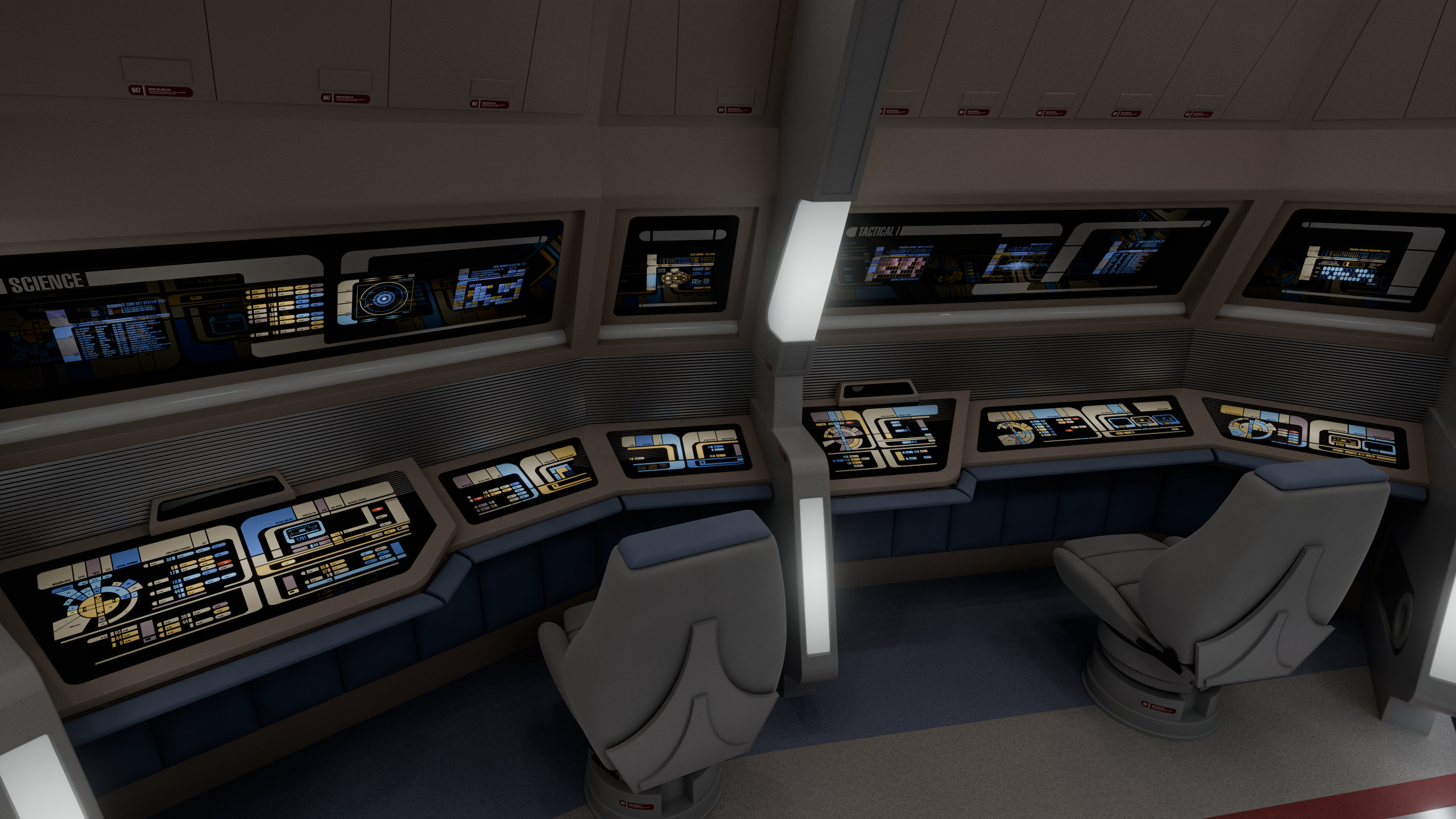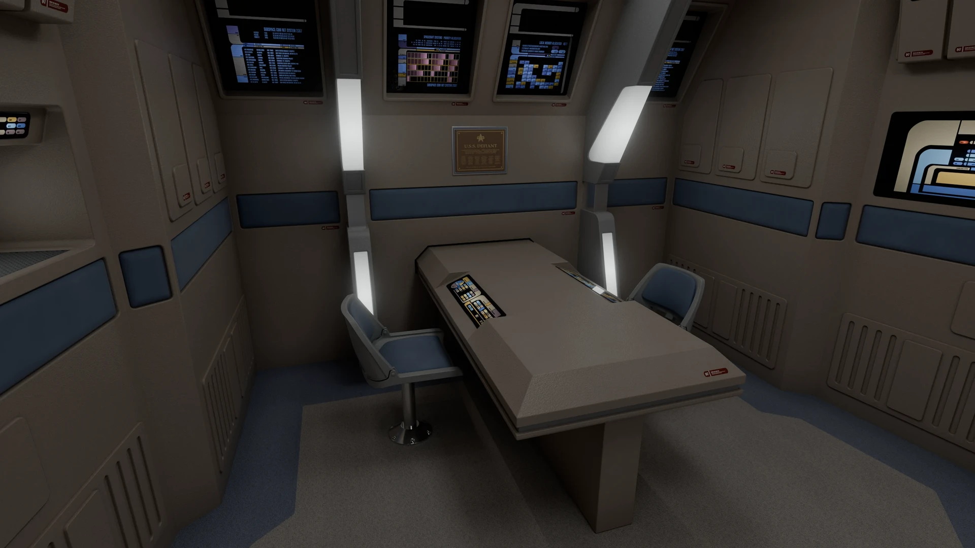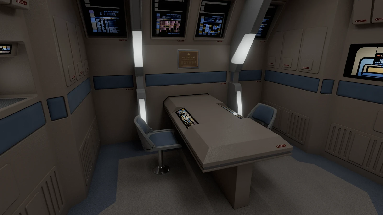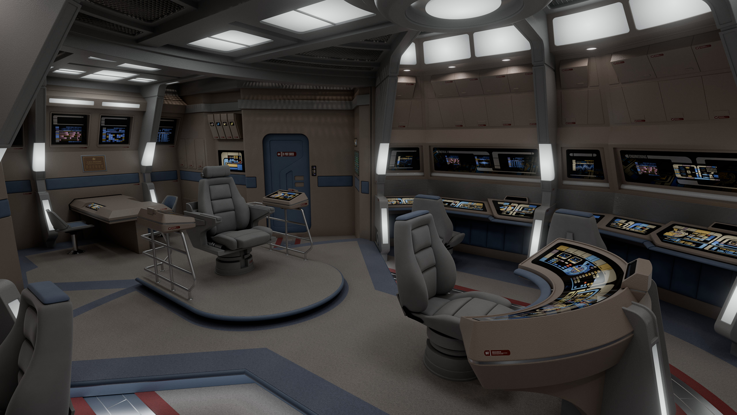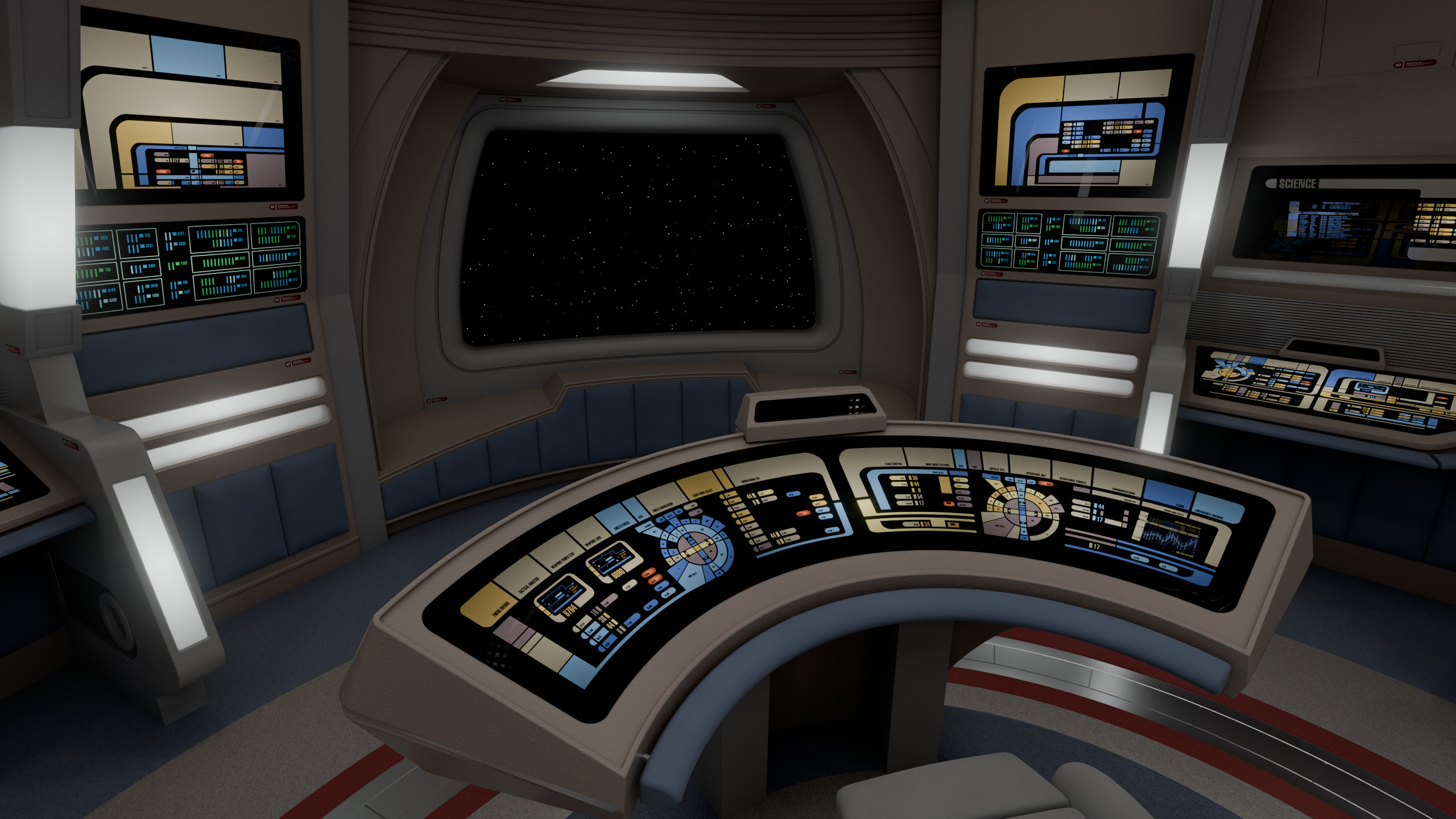 This model was originally created for OTOY and The Roddenberry Archive, you can fully explore this room at https://roddenberry.x.io/2371-uss-defiant-nx-74205/?view=Bridge.